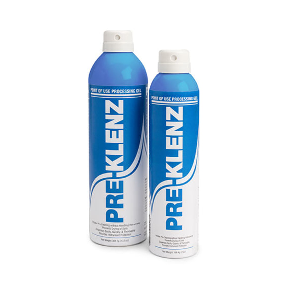 PRE-KLENZ™ combines a surfactant-based gel with corrosion inhibitors so that cleaning of surgical instruments can be initiated at point-of-use. PRE-KLENZ is available with a Bag-On-Valve (1505J9/1505J5/1505J1) or a trigger spray (150377) dispenser.