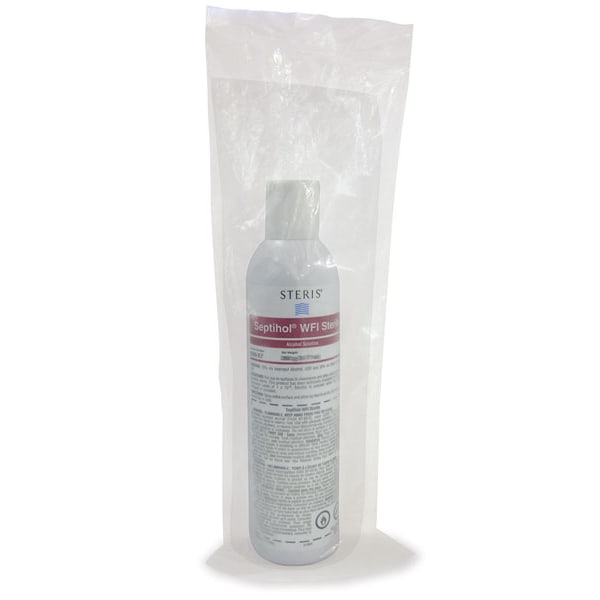 Septihol® WFI Sterile Alcohol Solution is a 70% (v/v) United States Pharmacopeia (USP) Isopropyl Alcohol and 30% (v/v) USP Water for Injection (WFI) blend that has been filtered to 0.22 micron and gamma irradiated for sterility. This solution is packaged in an innovative, bag-on-valve aerosol dispensing system which is double-bagged prior to terminal sterilization. Septihol® WFI Sterile Alcohol Solution may be used in aseptic processing areas as a final step to accompany cleaning, as it removes residues and has a quick evaporation rate.