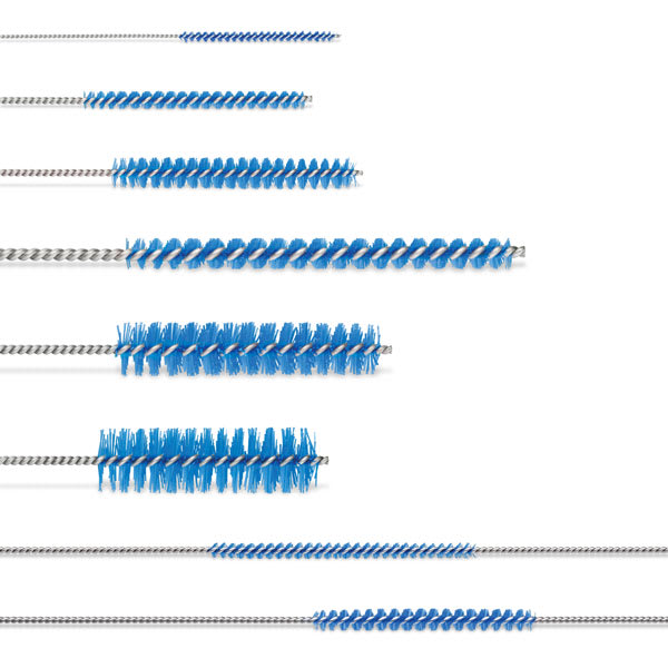 Polypropylene Channel Cleaning Brushes feature rigid polypropylene bristles on a twisted stainless-steel handle, delivering more rigorous cleaning than standard nylon bristles while remaining safe to use on instruments. Choose from a wide range of bristle diameters and brush lengths. Polypropylene Channel Cleaning Brushes feature a loop end on the handle (pull-through styles excluded). Bulk packaging is also available for Polypropylene Channel Cleaning Brushes. View a complete item number list and ordering information below.