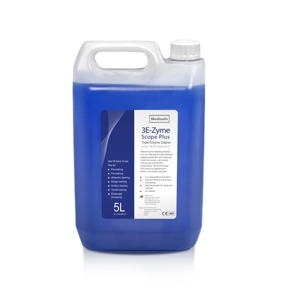 Concentrated 3E-Zyme Scope Plus cleaning solution removes organic matter and fatty deposits from surgical instruments in as little as 30 seconds. Our unique non-foaming formula allows deeper penetration and cleaning inside endoscopes, fine lumened and cannulated instruments.