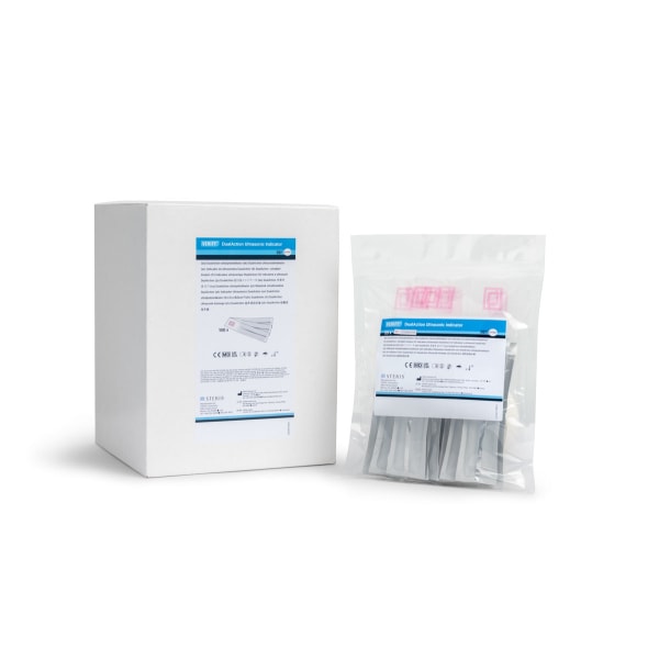 LCC027 is a box of 100 VERIFY DualAction Ultrasonic Indicators. Each indicator includes both a chemical indicator and an ultrasonic indicator in a single product. If this is your first purchase of these indicators, please note that a reusable holder is also required. The reusable holder is sold separately (SKU: LCC028).
