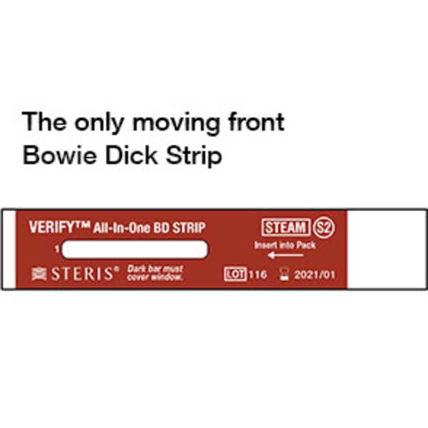 The VERIFY® Bowie Dick Indicator Strips are the only validated air removal indicator strips for use with the VERIFY® All-In-One Reusable STEAM Test Pack to create the daily air removal test.